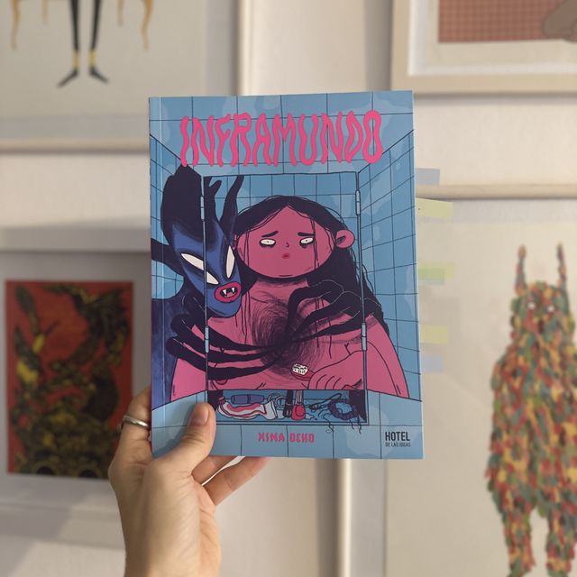 Carolina es joven y, como cualquiera que curse los conflictivos veintis, siente un extrañamiento ante la vida adulta. Su familia disfuncional, un trabajo que padece y las desilusiones cotidianas son las principales razones de su desazón. Pero también una voz que de vez en cuando aparece y retumba entre sus pensamientos hasta dejarla inerte y desorientada. Las páginas de Inframundo siguen a Carolina en noches de excesos, en incómodos almuerzos familiares y en intentos por mitigar la angustia y apagar esas voces incontrolables que no la dejan en paz. Con trazo urgente y una paleta oscilante y mamarracha como su protagonista, Xina Ocho crea un relato sensible y genuino en un registro que se desplaza con soltura entre la comedia inteligente y mordaz y el drama intenso y desolador. Inframundo es una historia sobre fisuras, desgarros y desbordes; sobre los infinitos reflejos con los que convivimos y tenemos que negociar día a día para que la existencia sea un poco menos tormentosa. Sobre crecer y lidiar con aquello que nos devuelve una imagen deformada, defectuosa e incompleta de nosotrxs mismxs. Sobre habitar lo que acontece en su errático e imperfecto devenir.